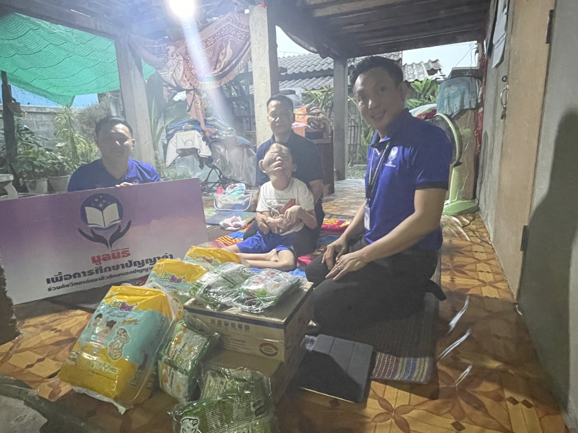 (น้องเกื้อ) บ้านเลขที่ 151/1 หมู่ 7 บ้านป่าตอง ตำบลป่าซาง อำเภอเมือง จังหวัดลำพูน 51120 โดยมอบสิ่งของ สิ่งจำเป็นที่ต้องใช้ในชีวิตประจำวัน